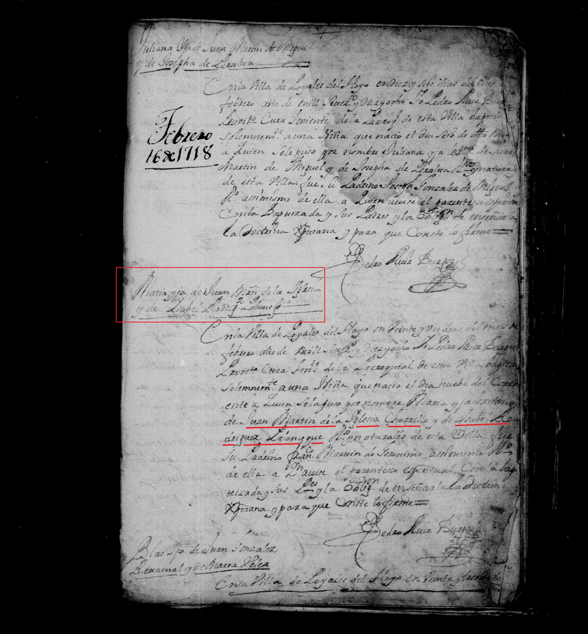Bautismo Ma, de Juan Mn.Iglesia Chorrillo, 21.02.1718 s.3