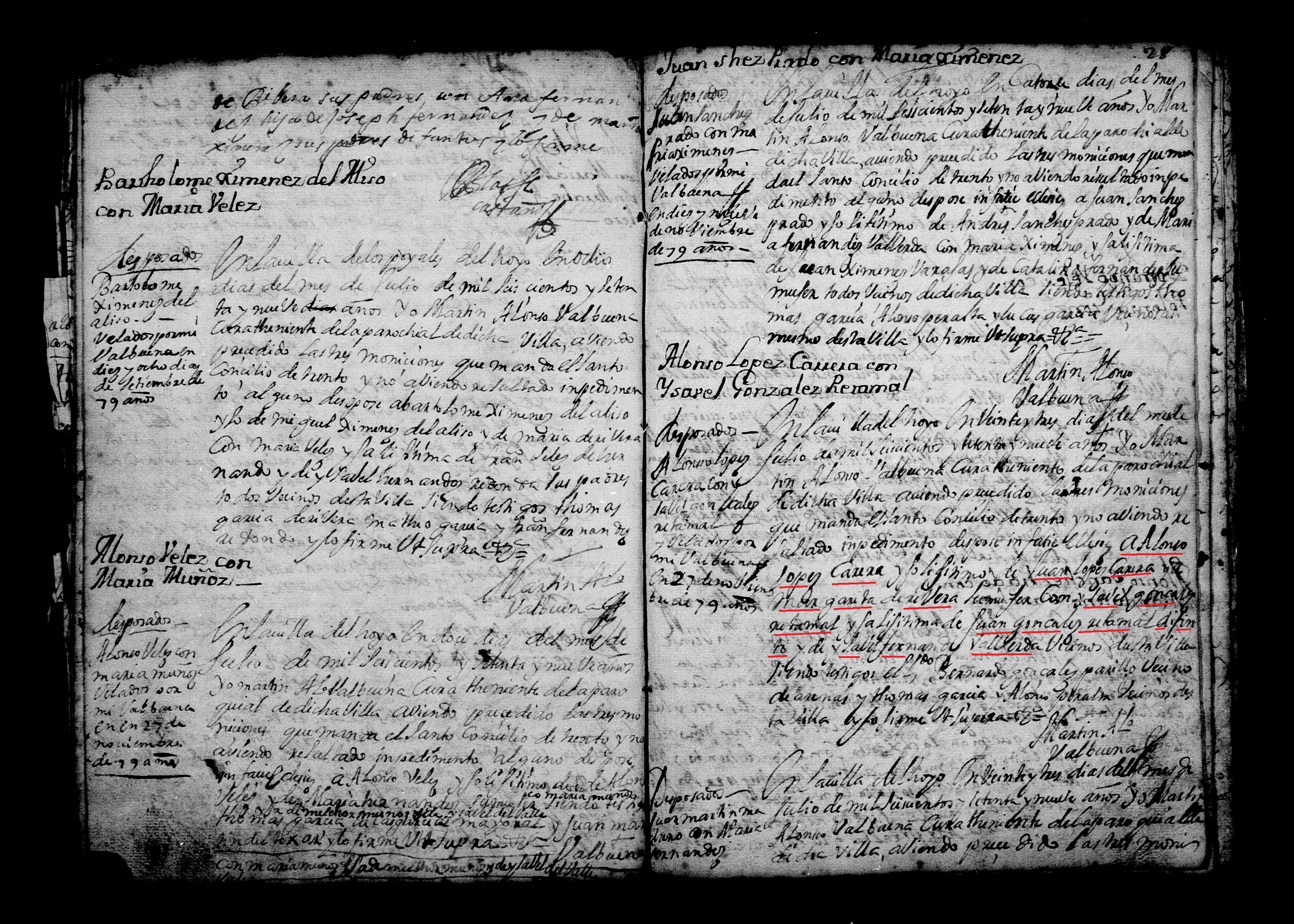 Matrimonio Alonso Lopez Carrera-Isabel Gzez. 23.09.1679