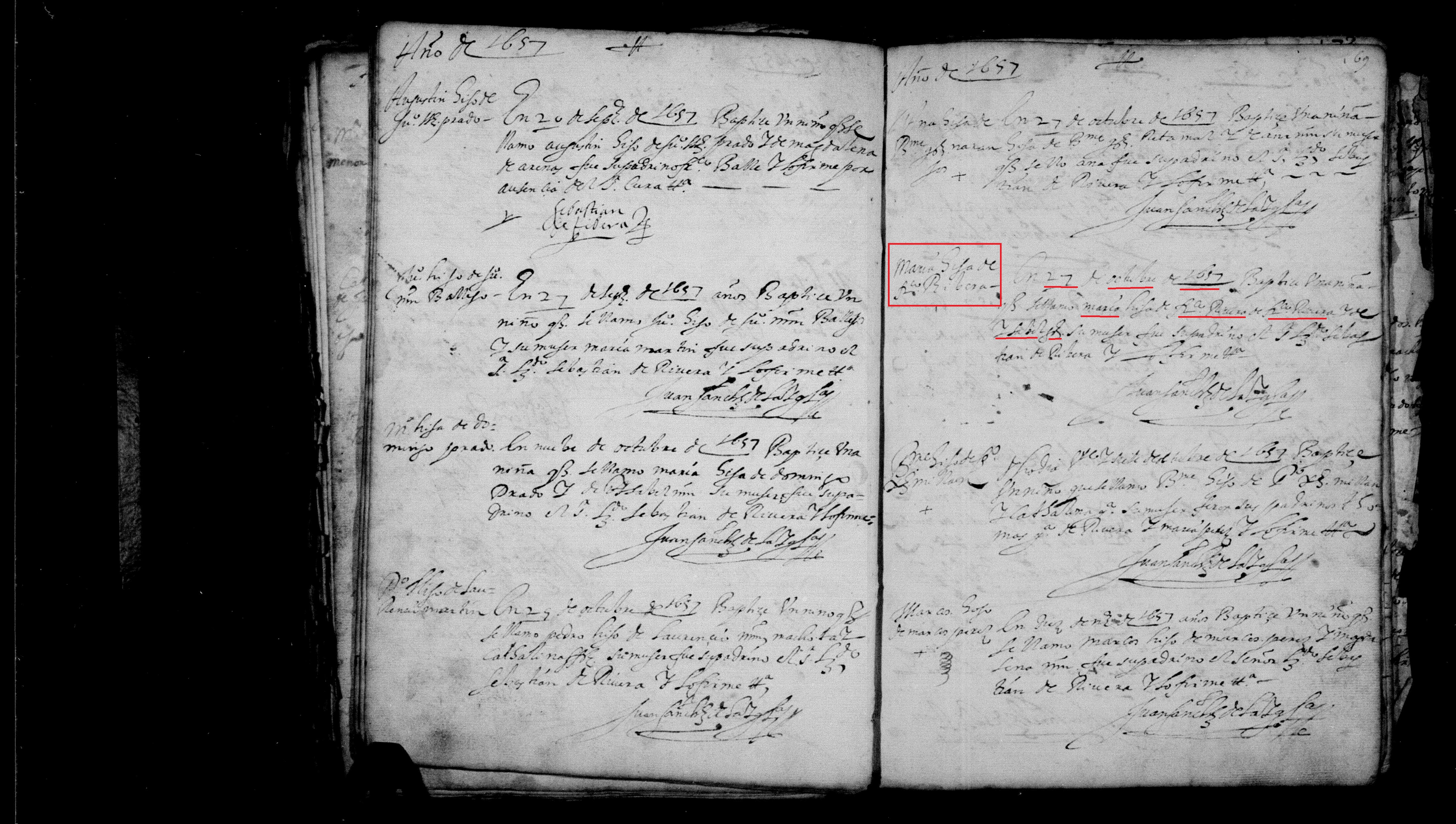 Bautismo Ma.de Fco.Ribera, 27.10.1657 s.158