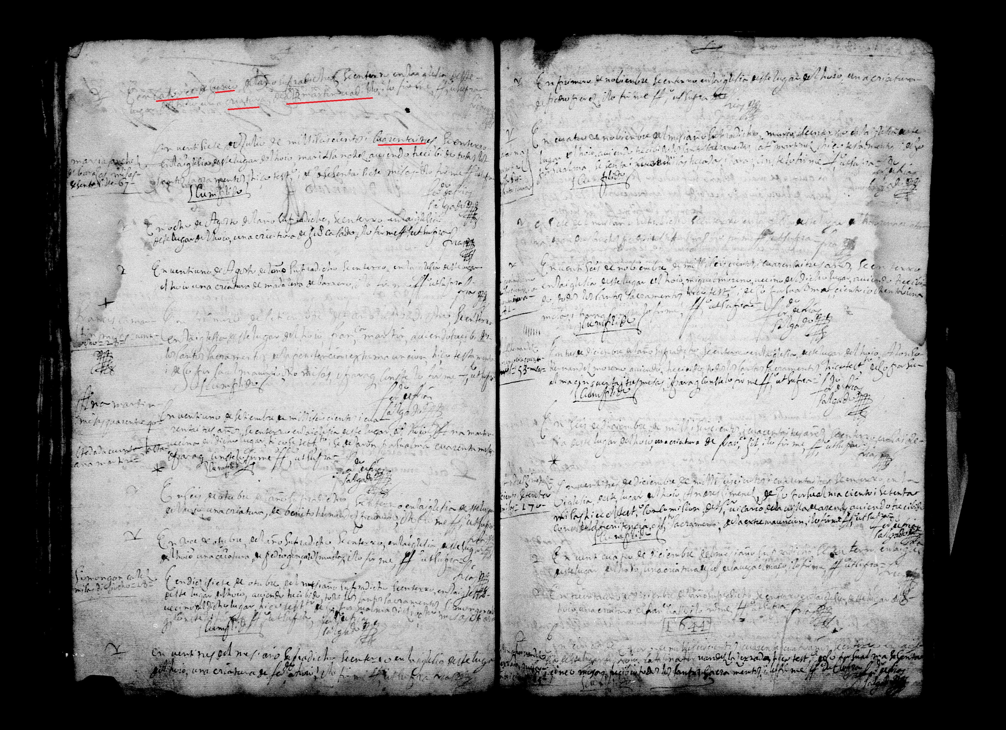 Defunción criatura Alonso Mn.Vadillo, 14.06.1643 s.11