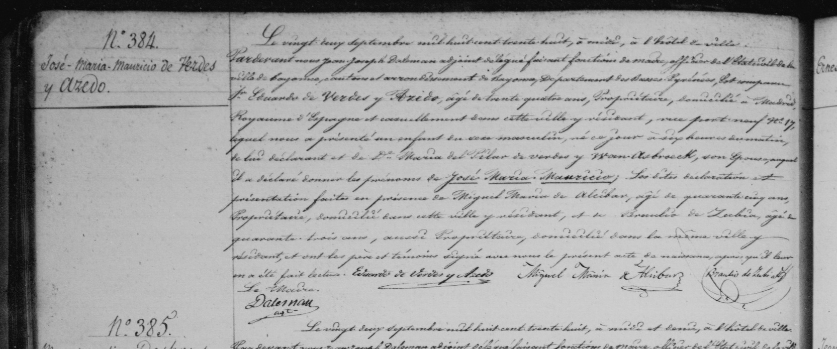 Nacimiento Jose Ma Verdes, Registro Bayona-22.09.1838