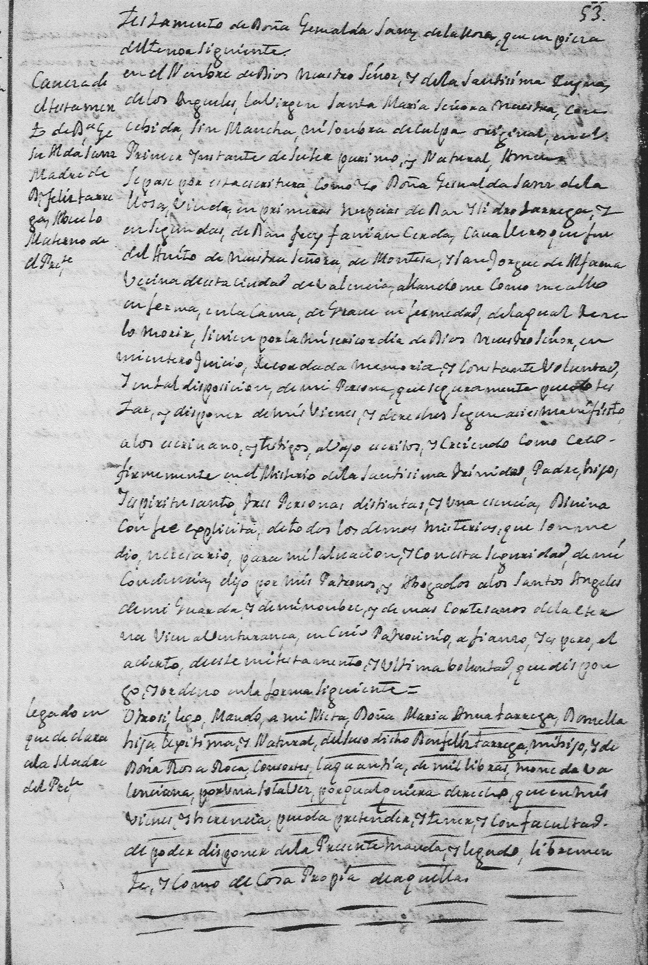 Copia del testamento de Jesualda sanz de la Llosa, folios 52v a 54