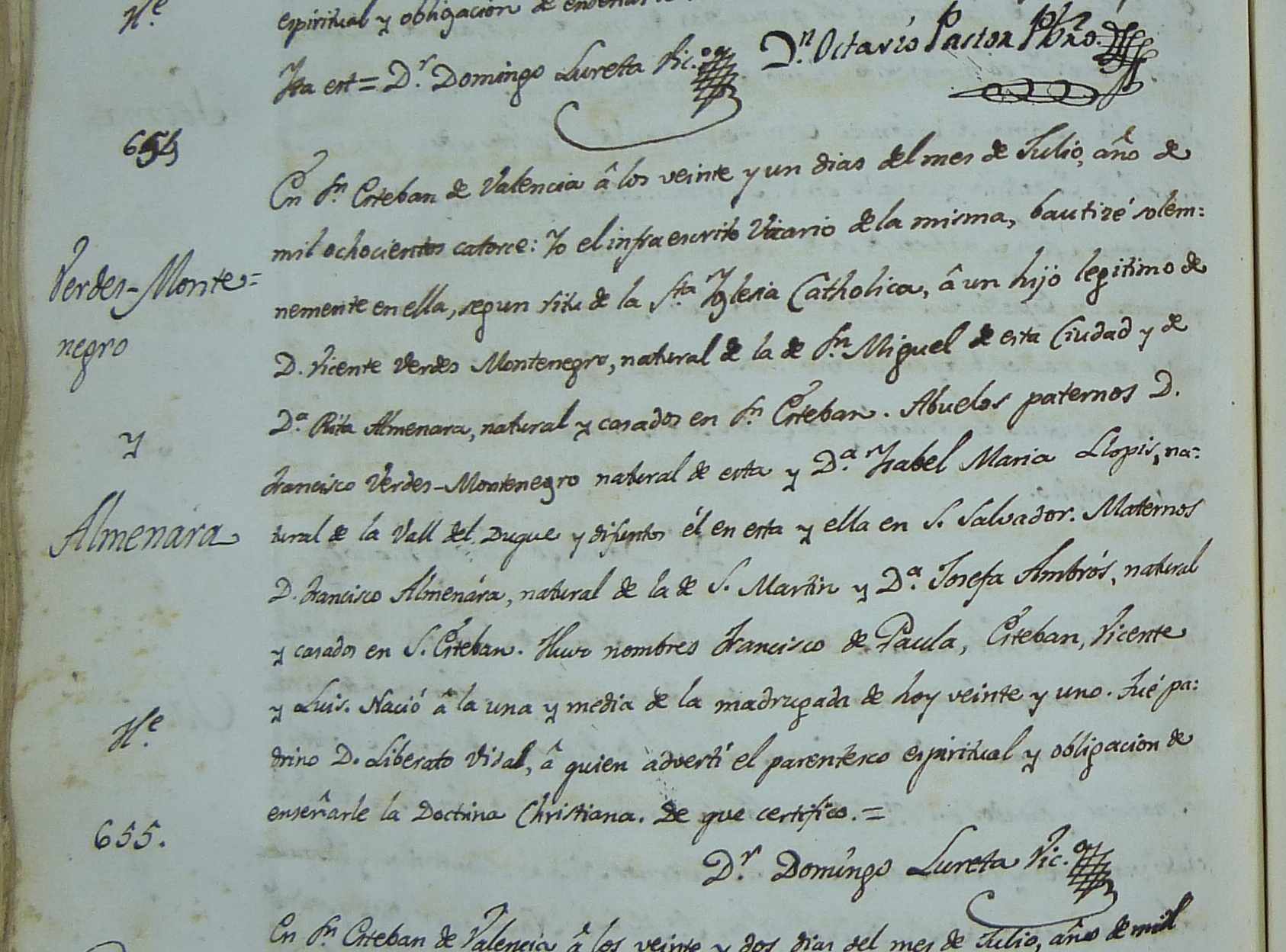 Bautismo Fco. de Paula VM Almenara 1814
