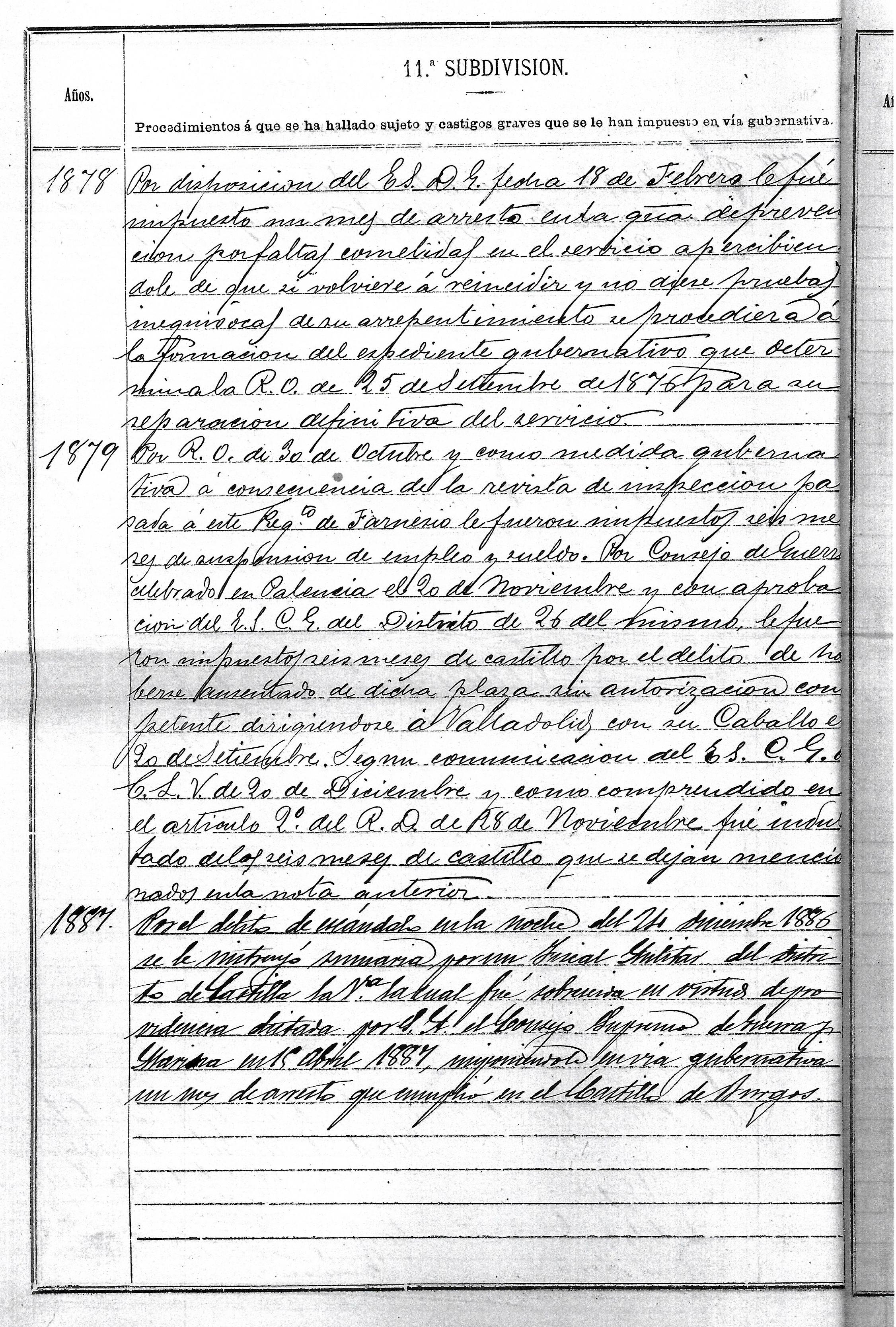 Servicios, vicisitudes, guarniciones, campañas y acciones de guerra