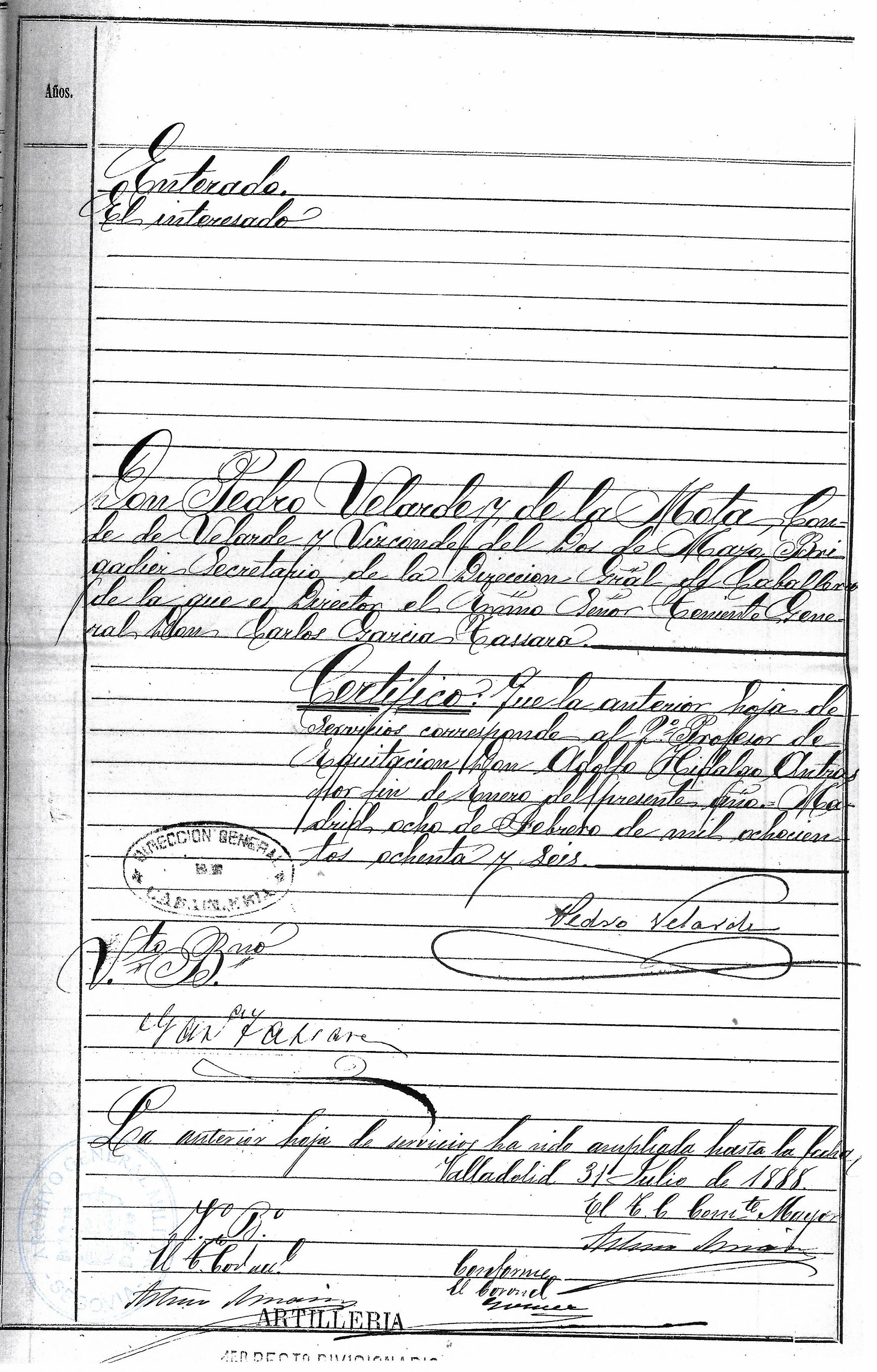 Servicios, vicisitudes, guarniciones, campañas y acciones de guerra