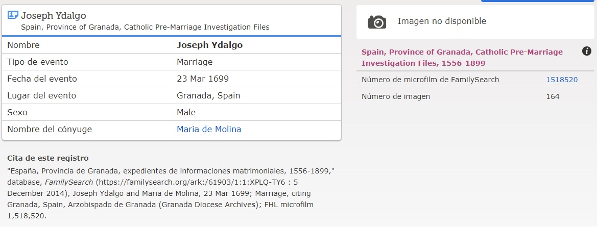 Expediente matrimonial de Joseph Hidalgo y María de Molina