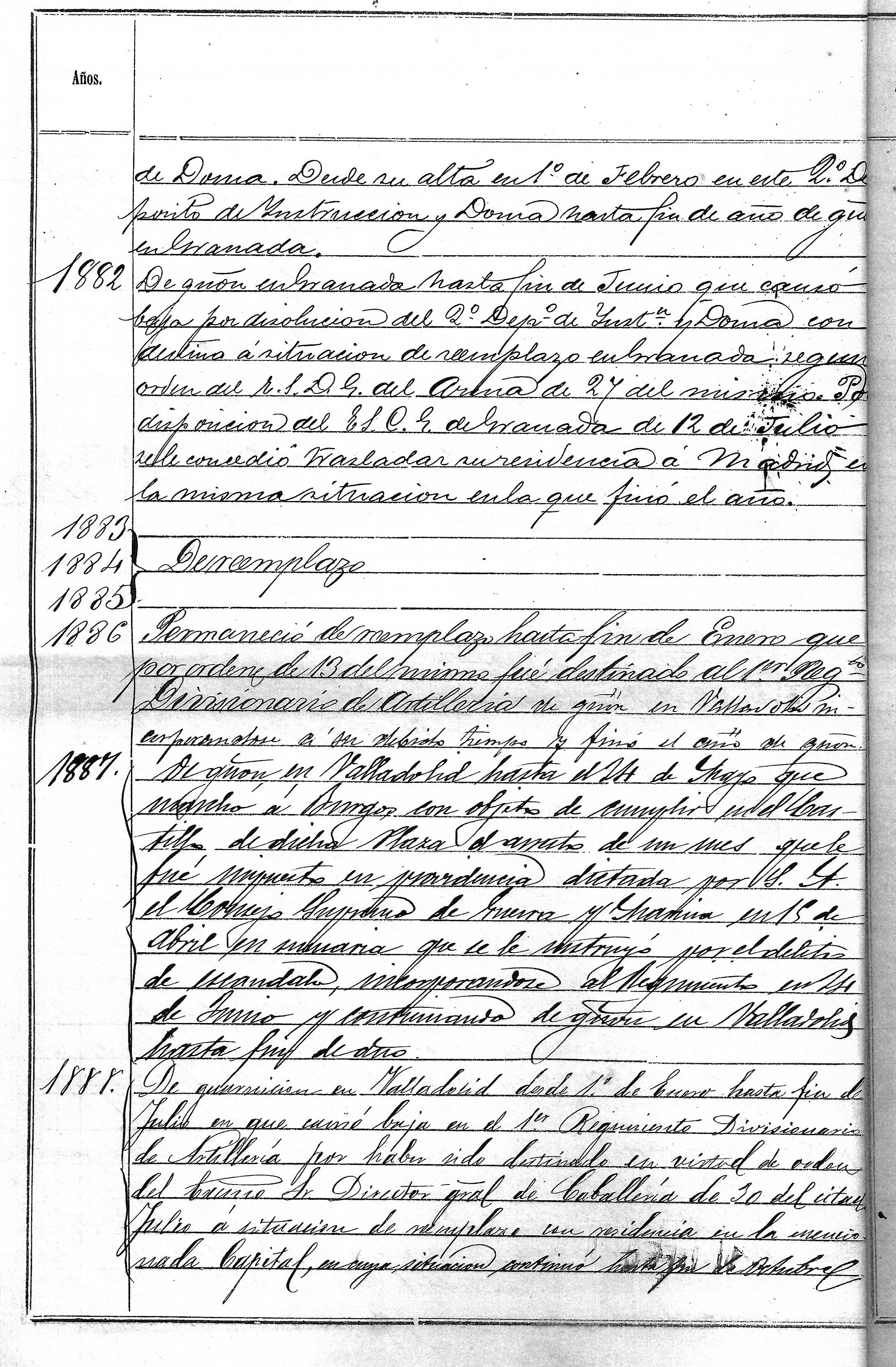 Servicios, vicisitudes, guarniciones, campañas y acciones de guerra