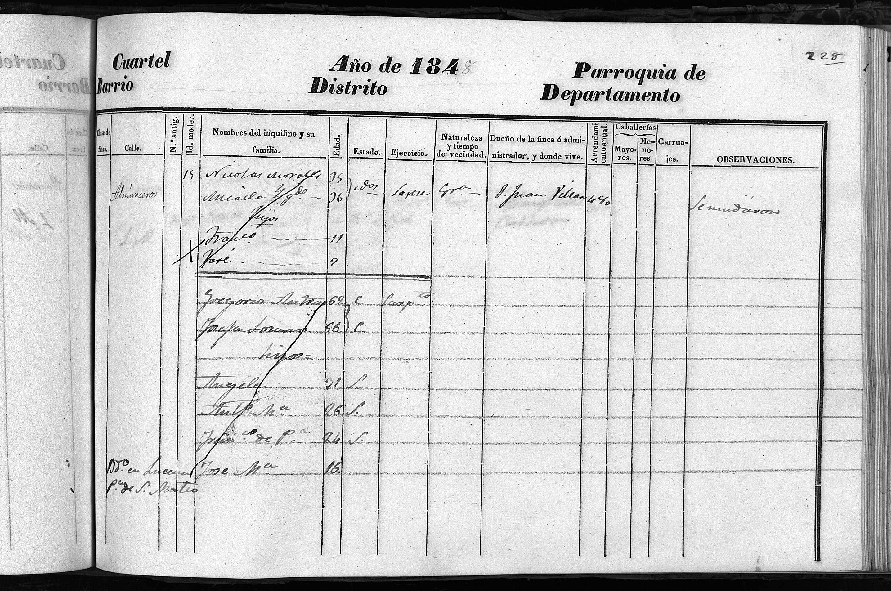 Padrón del año 1847-48, calle de Almireceros, 15 - Parroquia de San Gil
