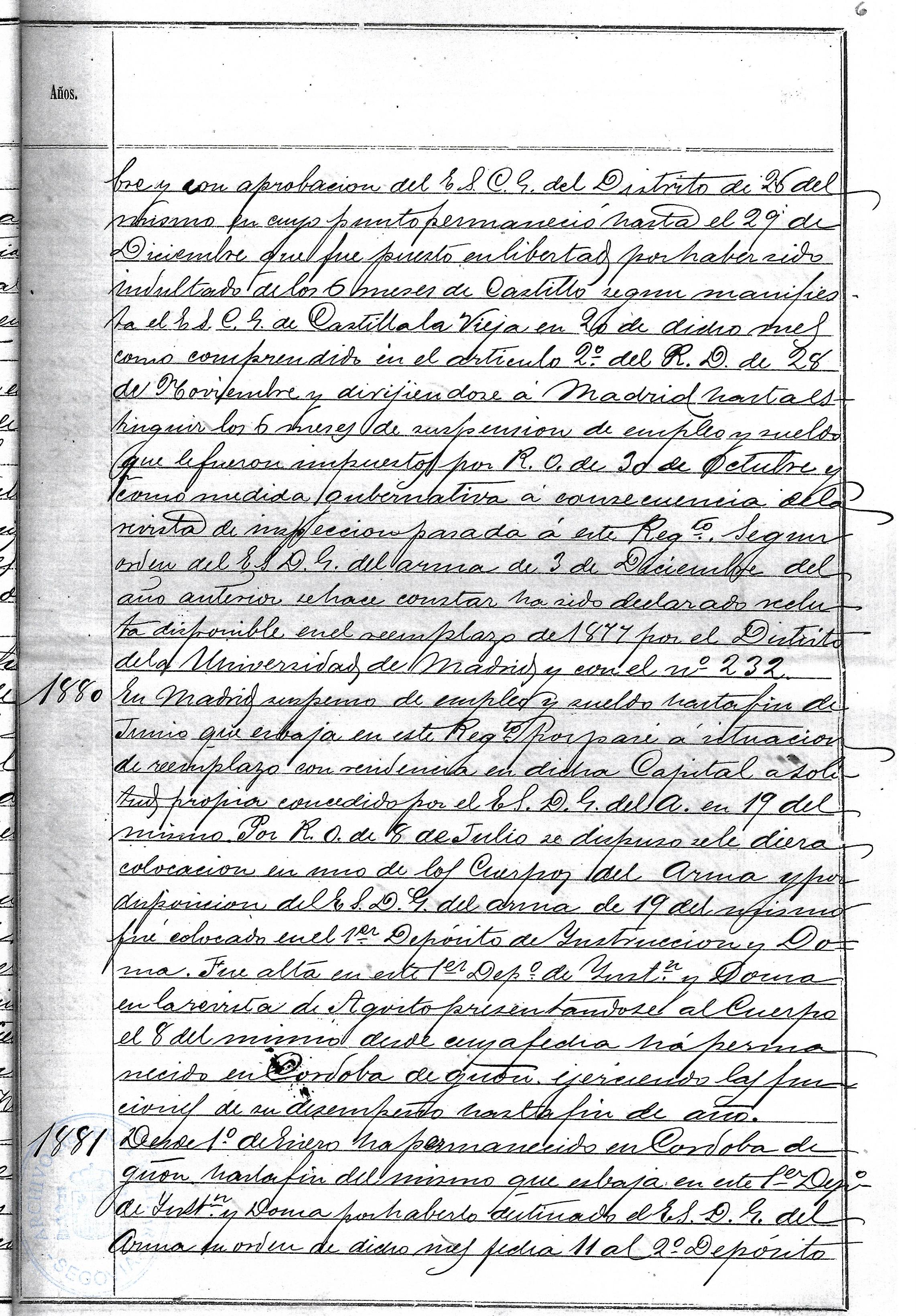 Servicios, vicisitudes, guarniciones, campañas y acciones de guerra