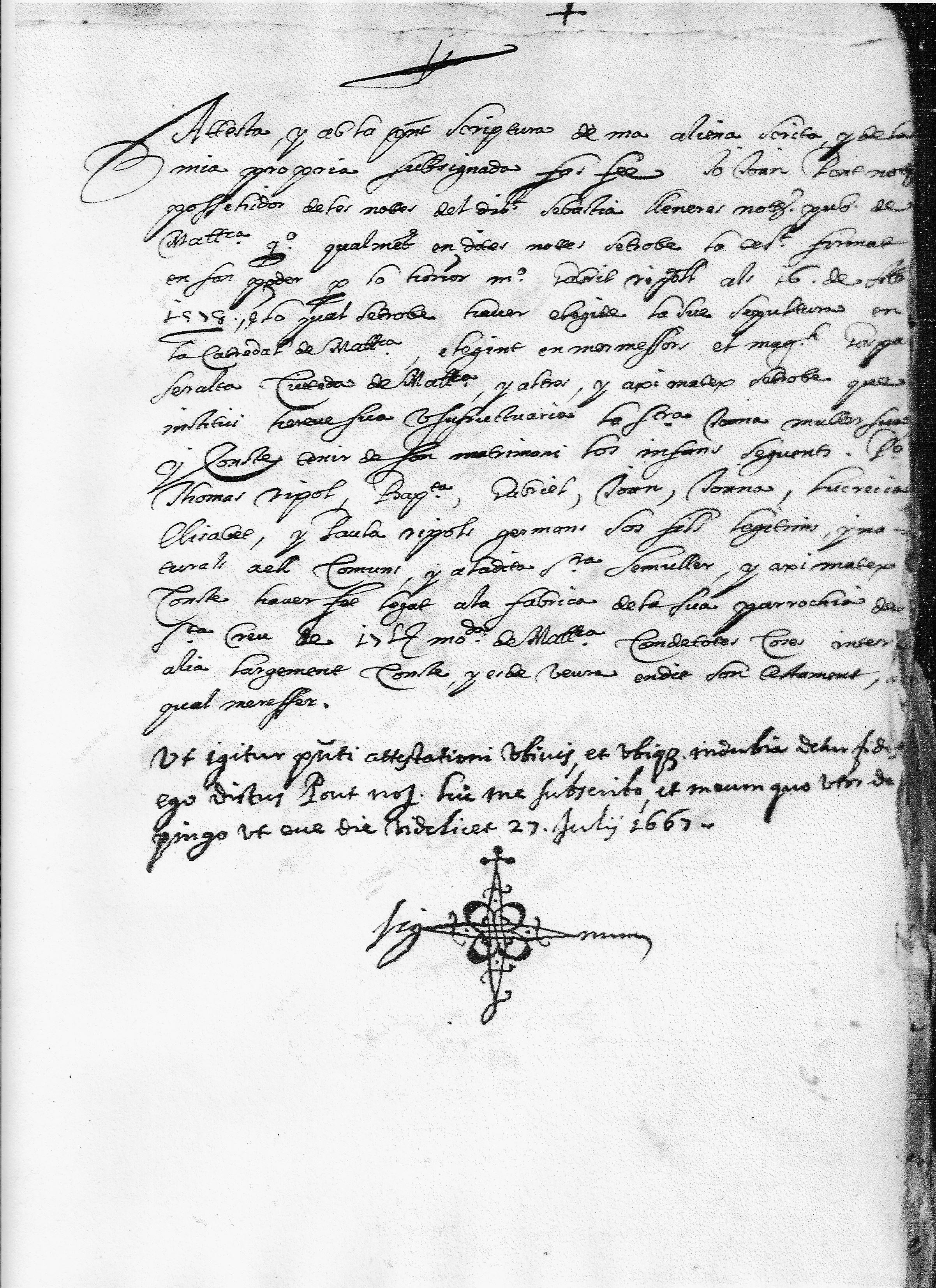 Extracto del testamento de Gabriel Ripoll (valenciano)