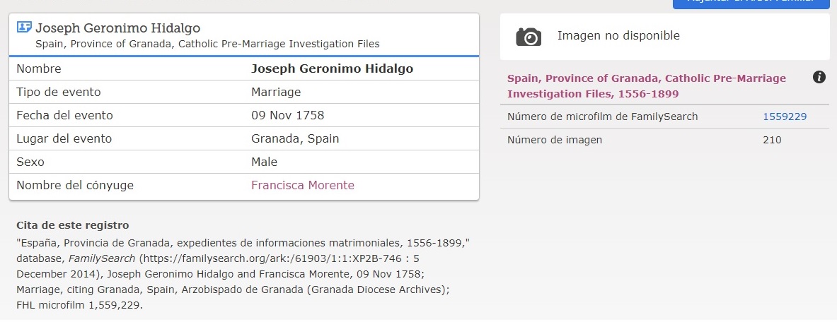 Expediente matrimonial de Joseph Gerónimo Hidalgo y Francisca Morente