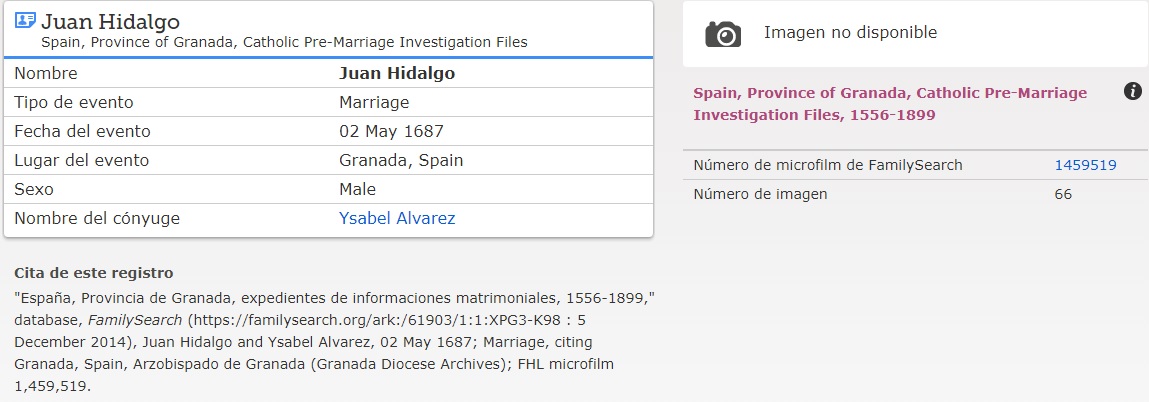 Expediente matrimonial de Juan Hidalgo e Isabel Álvarez