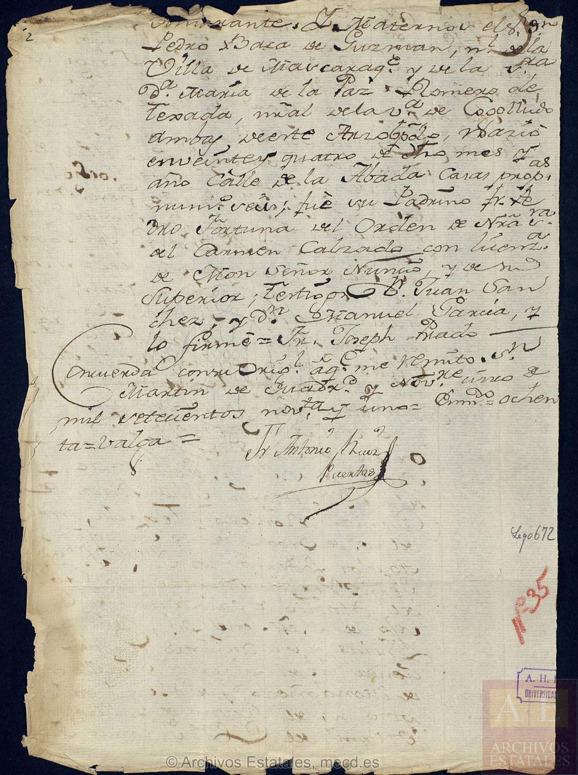 Bautismo Juan VM y Vaca de Guzman, 25.11.1782-UNIVERSIDADES,672,Exp.35-2