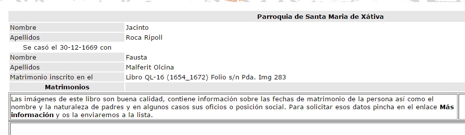 Matrimonio Roca-Malferit, 30.12.1669, ficha breve
