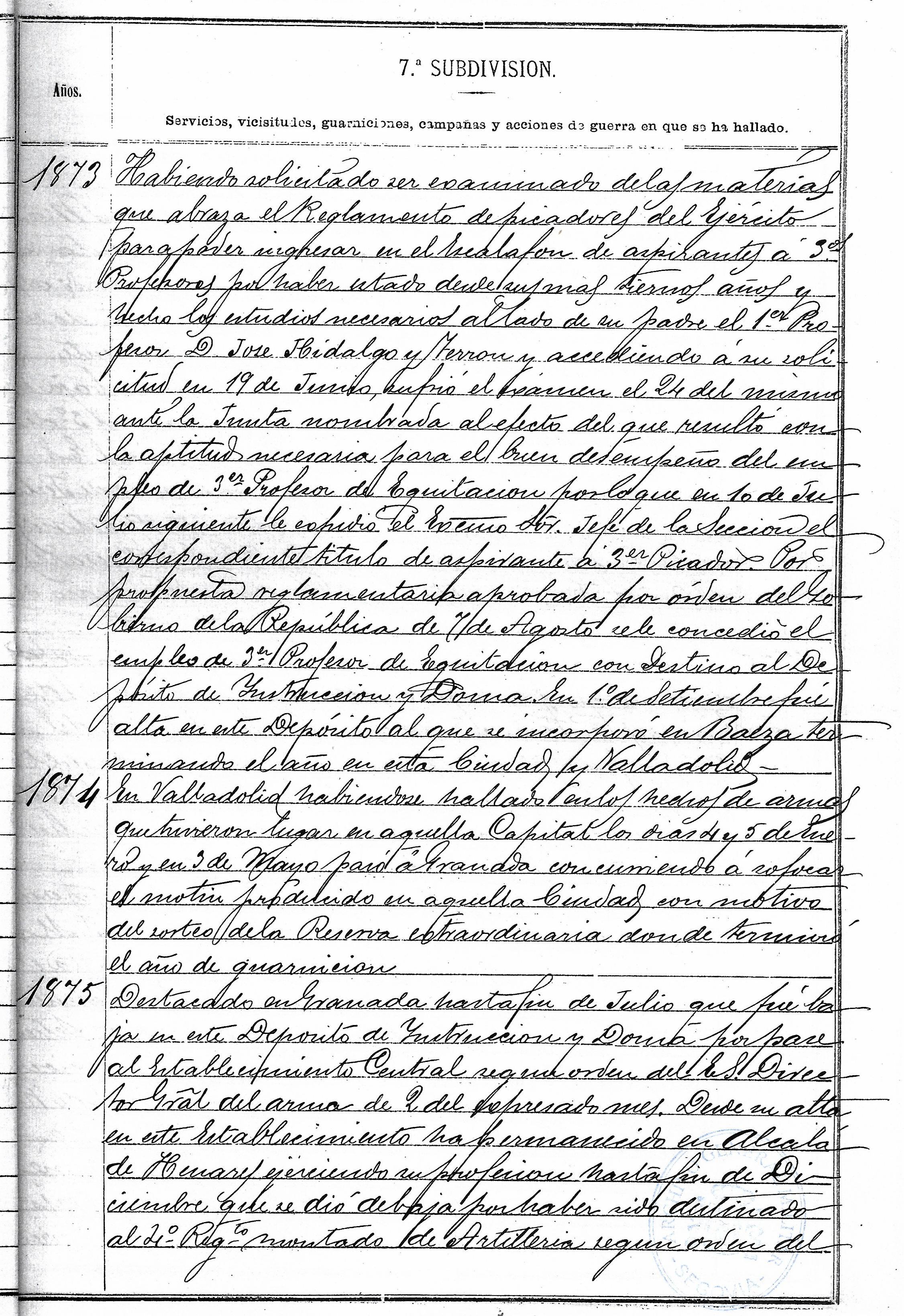 Servicios, vicisitudes, guarniciones, campañas y acciones de guerra