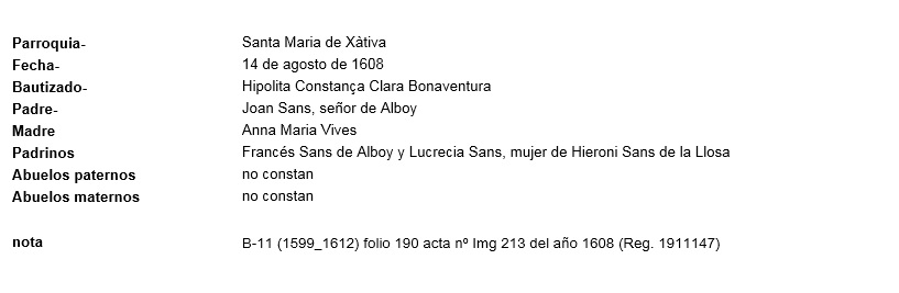 Bautismo Constanza Sanz de Alboy, 14.08.1608