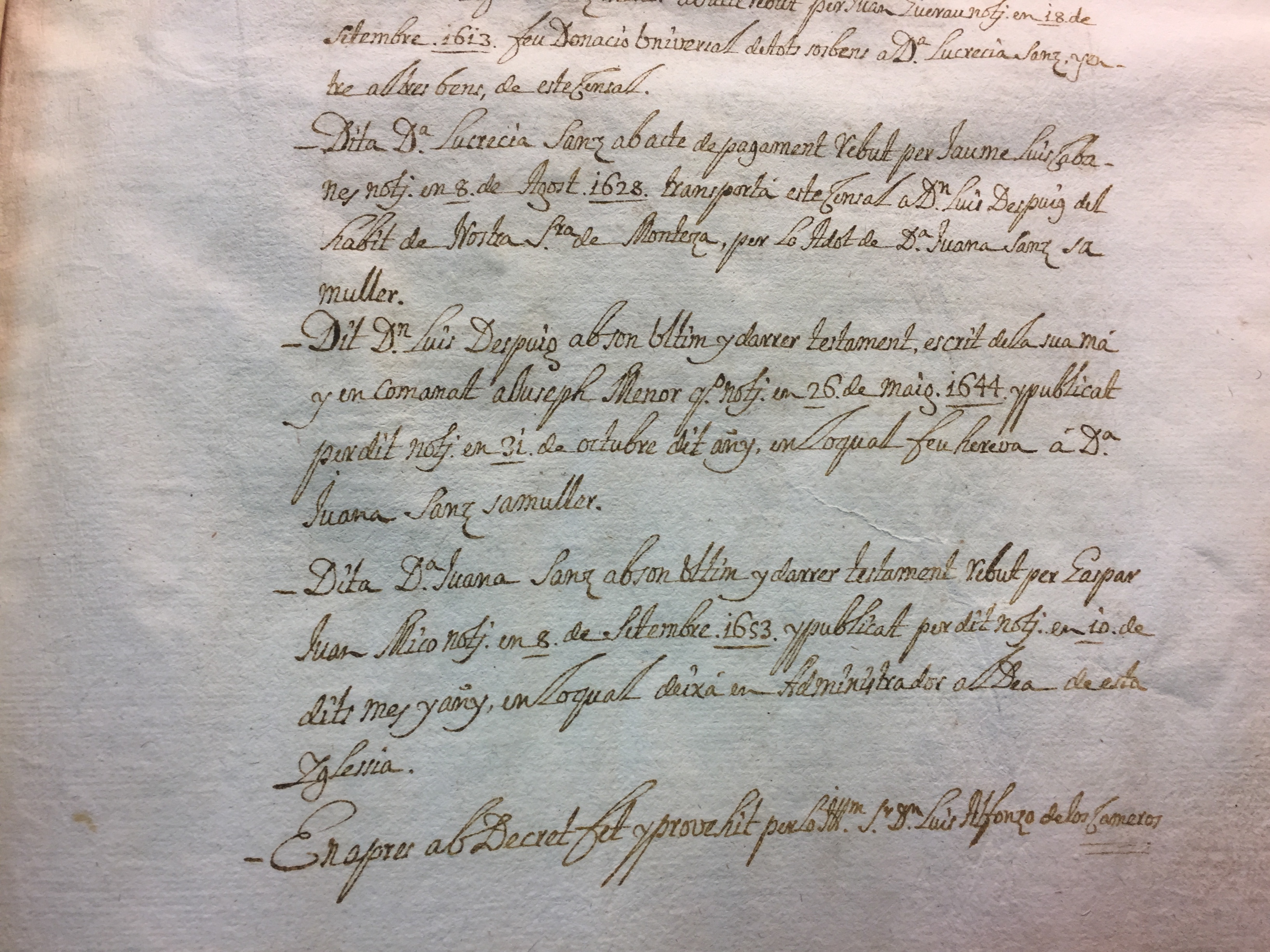 1. Hace donación universal a su hija Lucrecia Sanz de Alboy