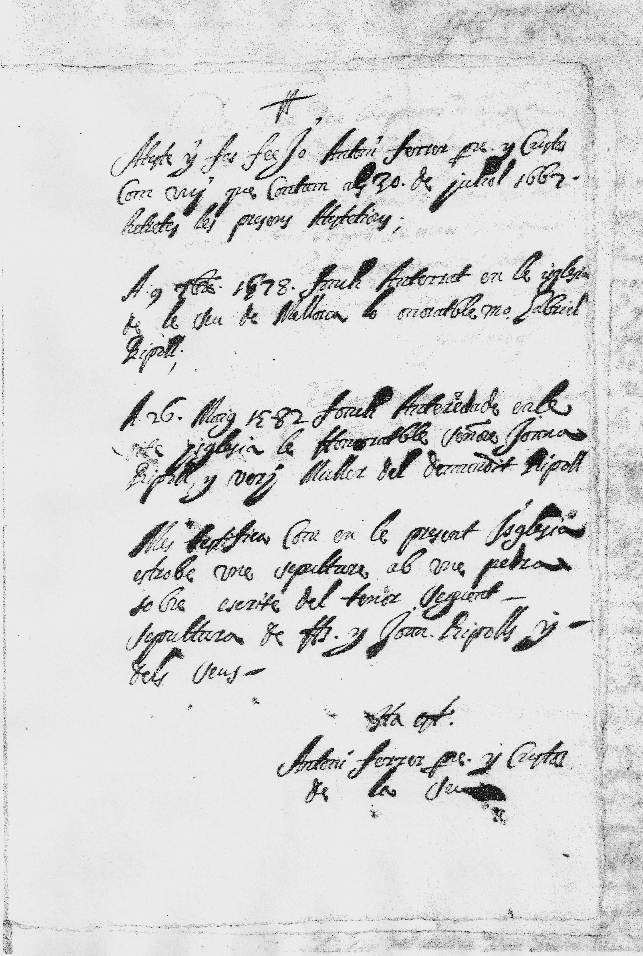 Certificación entierros Gabriel Ripoll y Joanna de Verí