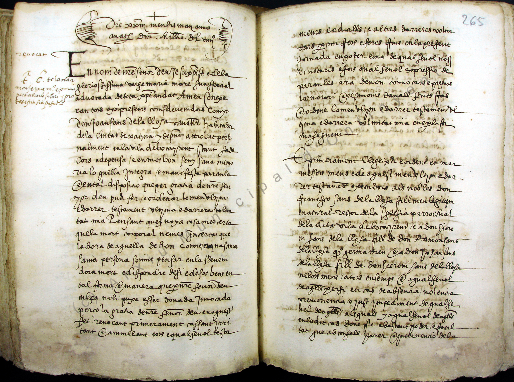 Testamento de Don Joan Sanz de la Llosa, folio 265