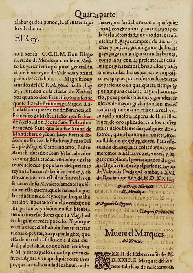 Viciana, Libro IV, Carta Mques.Melito, 1522