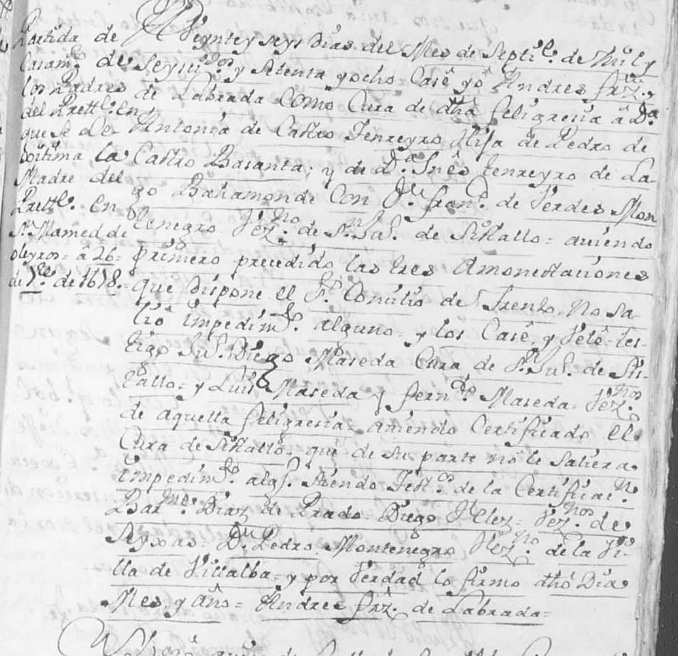 Matrimonio Verdes Montenegro-Castro, 26.09.1678