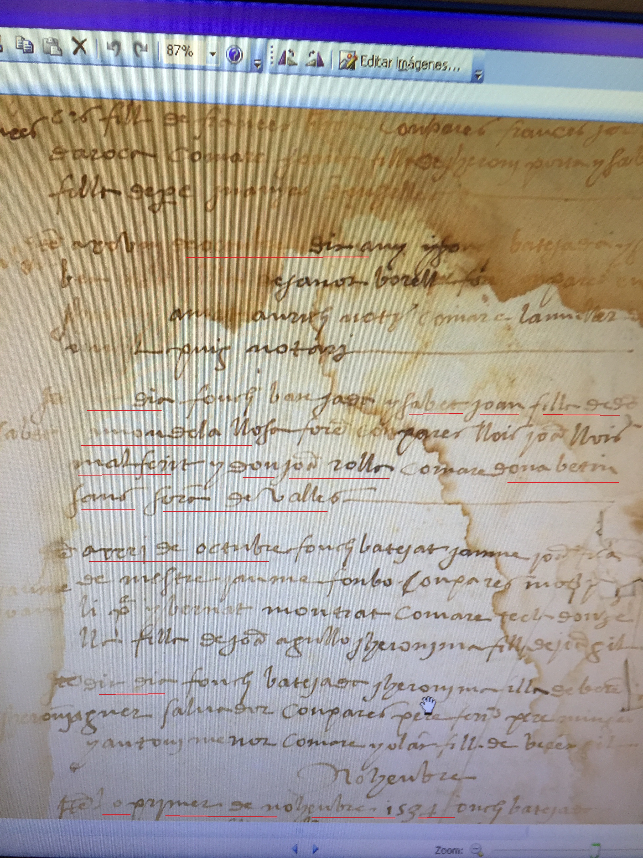 Bautismo Isabet Joan Sanz de la Llosa, oct 1534-1