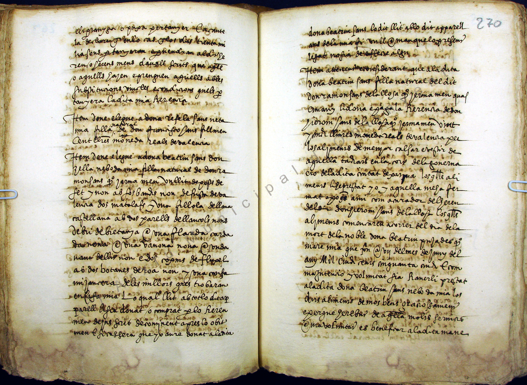 Testamento de Don Joan Sanz de la Llosa, folios 269v y 270