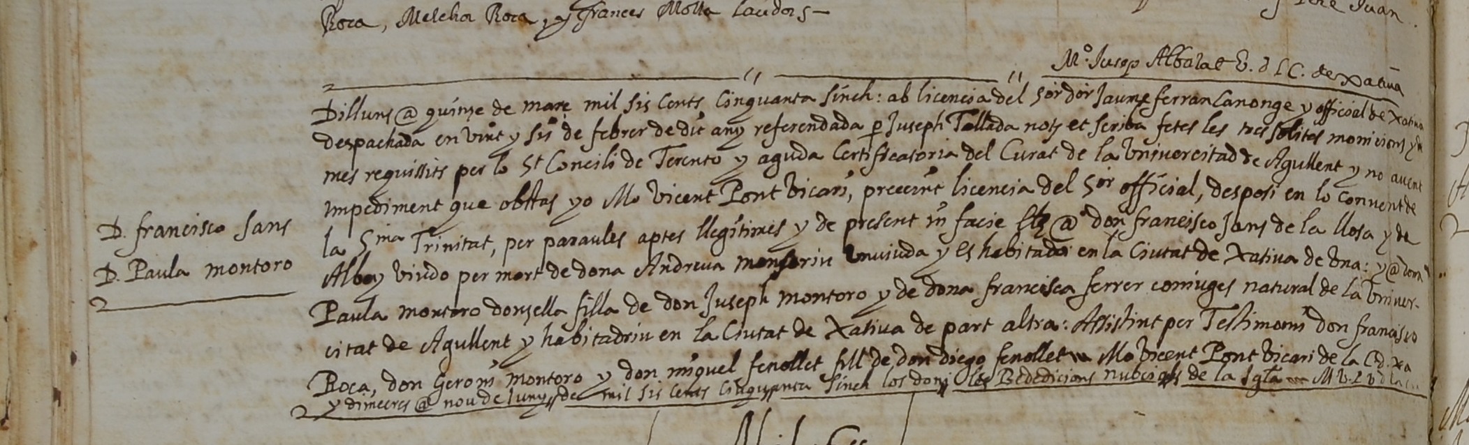 Matrimonio Sanz-Montoro, miércoles 09.06.1655