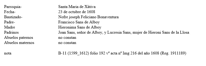Bautismo Onofre Sanz de Alboy y Sanz de Alboy, 23.10.1608, ficha